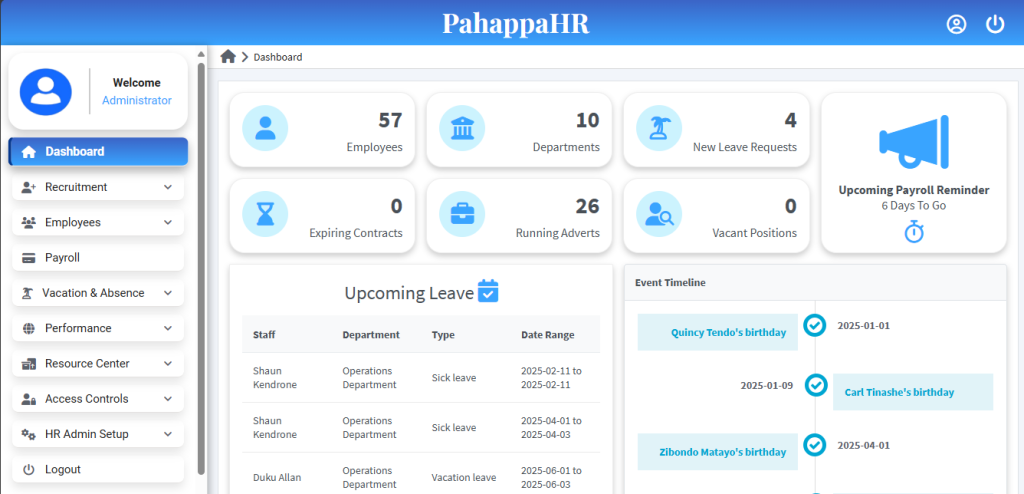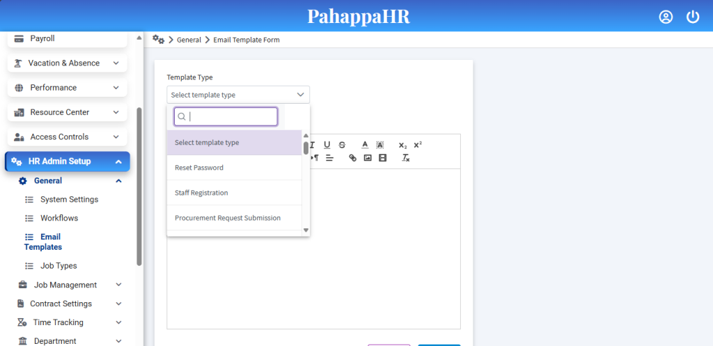 This feature allows administrator to setup the HR system as per the client’s specifics.