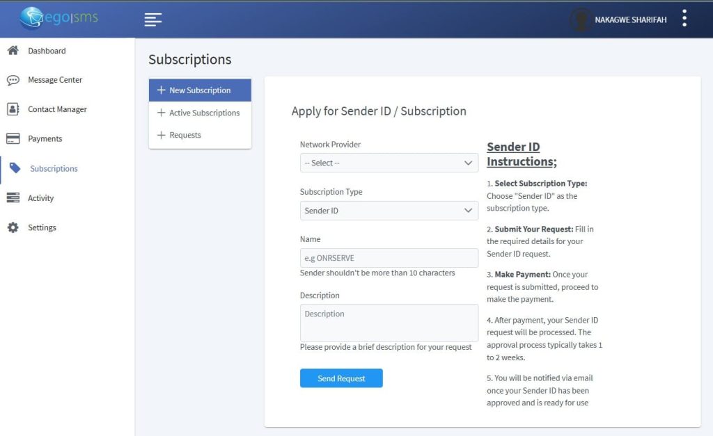 - Submit Your Request: Fill in the required details for your Sender ID request.